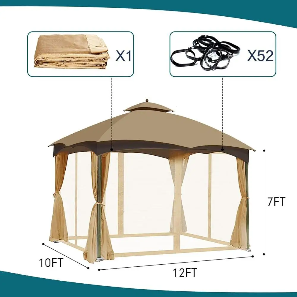 About this item Durable Fabric: Replacement mosquito netting with fabric trim, zipper on each side,Weather-resistant and fire-retardant polyester fabric. Dimensions: 10 ft (L) x 12 ft (W) x 7 ft (H). Please do the measurements of your existing gazebo frame prior ordering and make sure that our product will fit it. Easy to Install: Simple assembly required to insert O rings (included) into netting loops and hang over existing gazebo's frame. Replacement Insect Netting ONLY. Not including canopy and metal models.