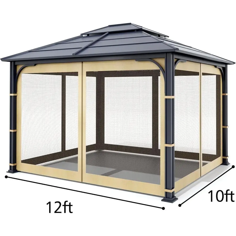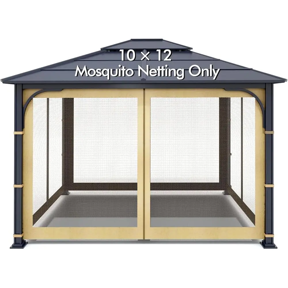 Universal Replacement Mosquito Netting Outdoor Gazebo Canopy 4-Panel Screen Walls with Zipper Durable Weather Resistant Insect